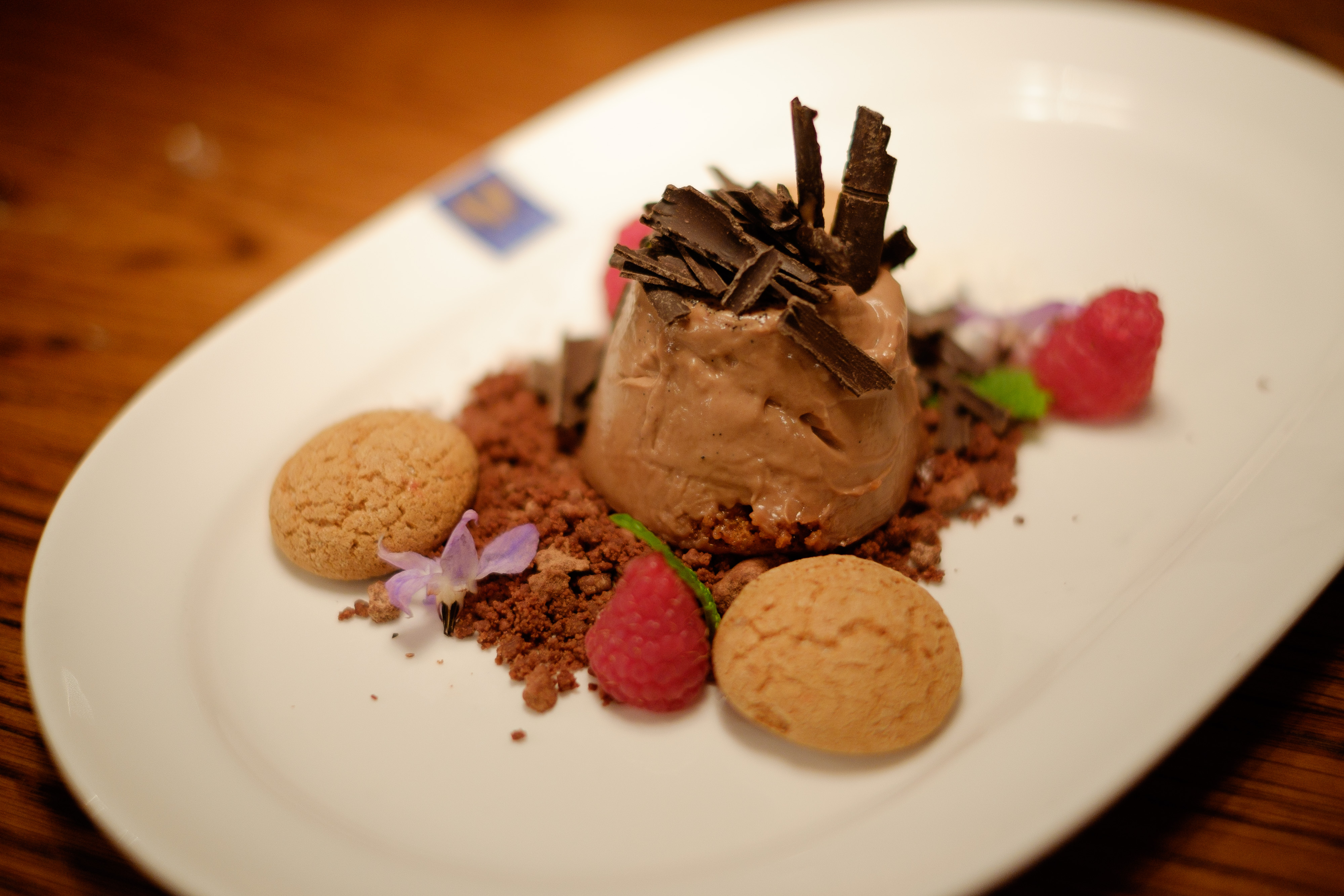 The second dish Alessandro described was a dessert called “Walk in Glen”. The dish is whisky and amaretto biscuit infused chocolate Panna Cotta, on a bed of crushed meringue and crystallised chocolate. Its presentation depicts that of a shoreline and water it’s another clever homage to the heritage of Loch Fyne.