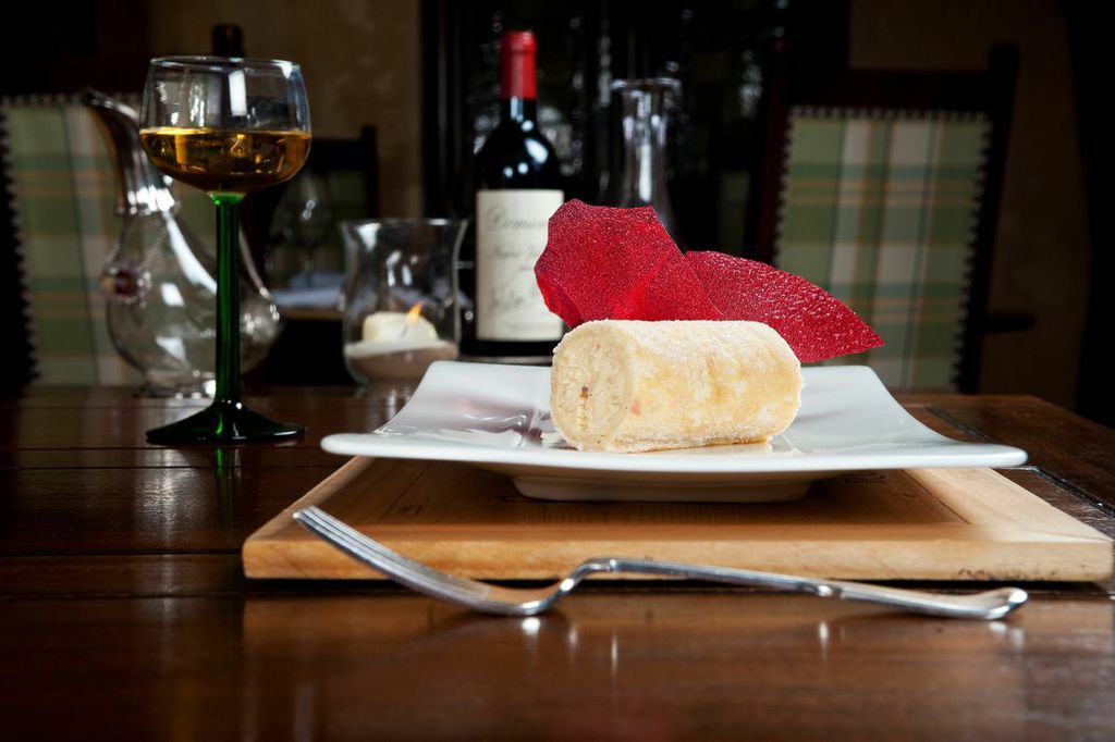 The restaurant is separate from the 8 bedrooms, they are situated in the pretty lodge behind the eaterie. As you enter the restaurant you are met with the wonderful smell of fresh cut flowers and the theme of well thought out detail is carried out throughout. The décor has a homely feel, with beautiful antique furniture, open fireplaces and candle wall lighting to add to the warm glow. The windows are unusually round and frame the walls beautifully. The ceilings are tall and the lovely wooden beams are exposed for you to admire. The dining area is open and two stained glass windows from a local church have been fitted into the wall, an excellent addition to this well presented restaurant.