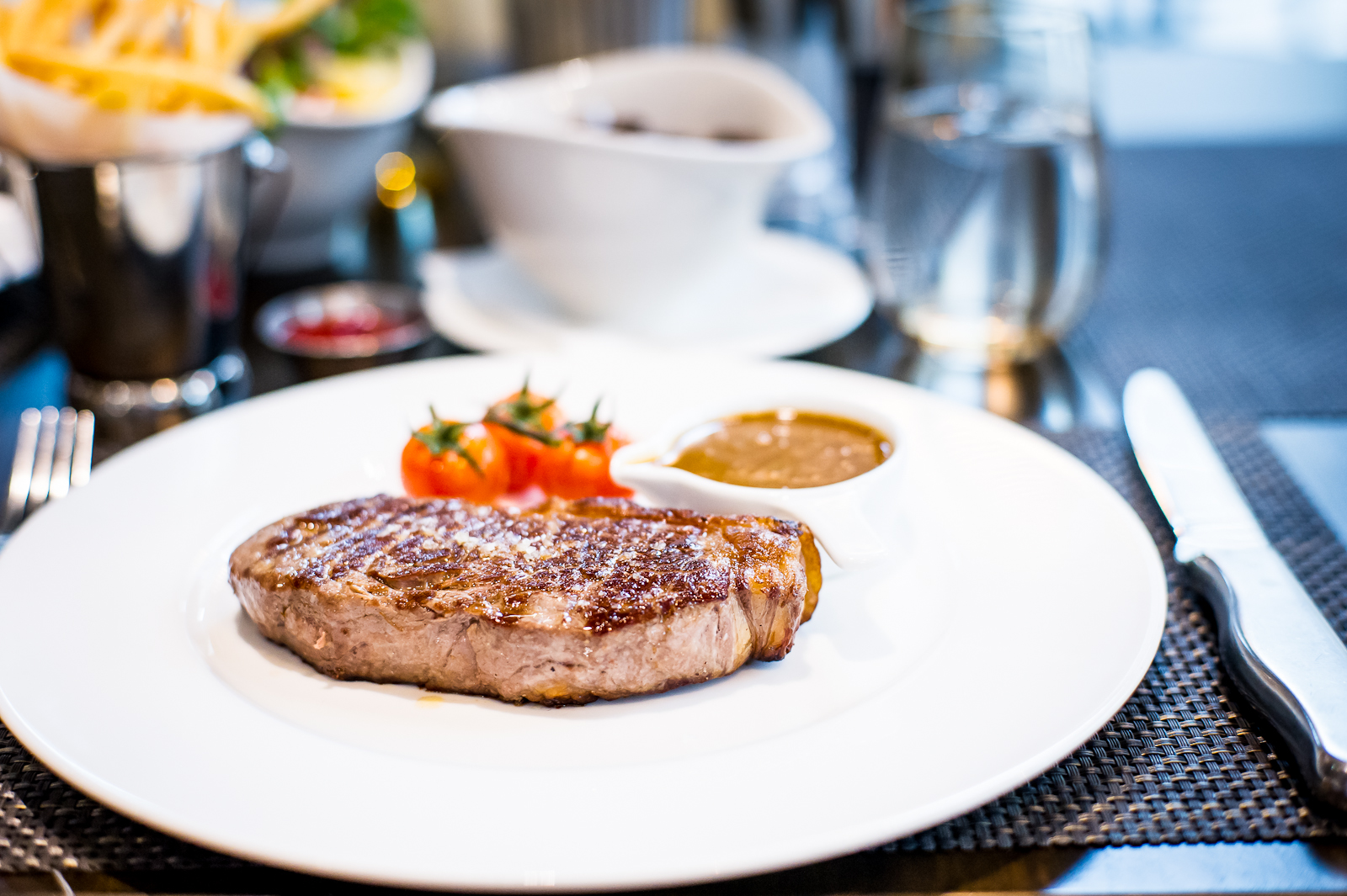 Along with numerous tasty mains such as the fish of the day, ribs and corn fed chicken, the stars of the show are of course the steaks. Served with any sides you wish, such as sweet potato fries, mac ‘n cheese or tomato salad, the tasty meat on offer at the Manhattan Grill is of the highest quality. Diners can choose form Creekstone Kansas USDA Black Angus or Scottish Aberdeen Angus. There are also then a variety of sauces to pick from, so the combinations are countless and you are certainly spoilt for choice! I went for the New York Strip steak, which was cooked to perfection. I was able to try a number of sauces, though my favourite was the bourbon peppercorn, which was just the right amount of kick to go with the already flavourful meat.