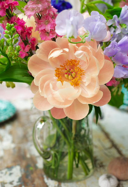 ’Small bunches of wild flowers in vintage jugs or glasses, or herbs in nice ceramic pots like rosemary, lemon verbena or lavender as they add colour and fragrance to the table.’