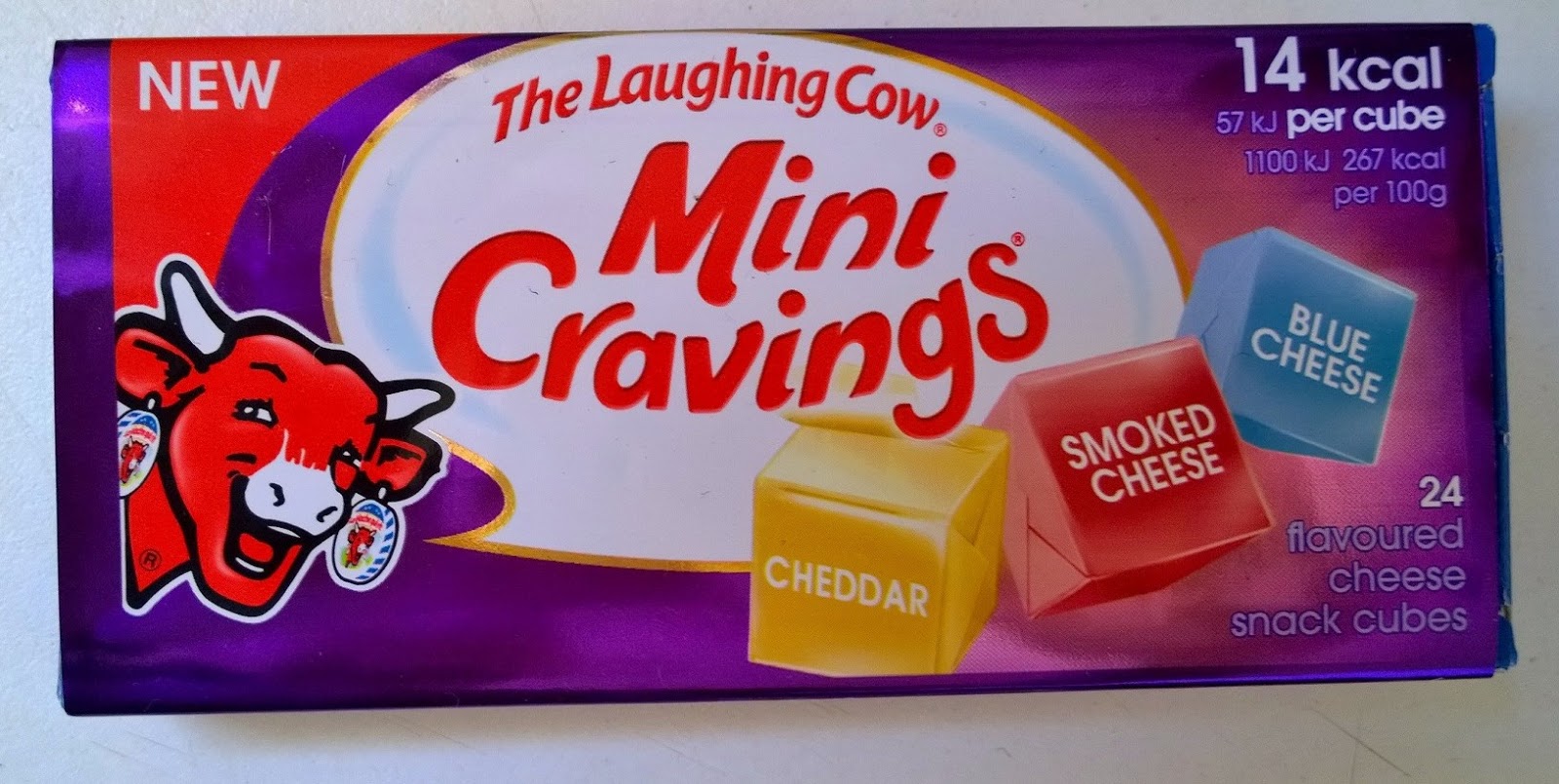 This is our take on the new flavours.. The Smoked Cheese is full of flavour and perfect for an after dinner desert with crackers. The Blue Cheese is actually very mild, perfect for those who love the idea of blue cheese, but are afraid of the strong flavour. The Cheddar is very cheesy and amazing with tomato on crackers. The Three Cheese is a tasty alternative, it doesn’t taste quite like three cheeses, but it is smooth and cheesy. The Original for me is still the best, delightfully creamy and only 14 calories in a cube.