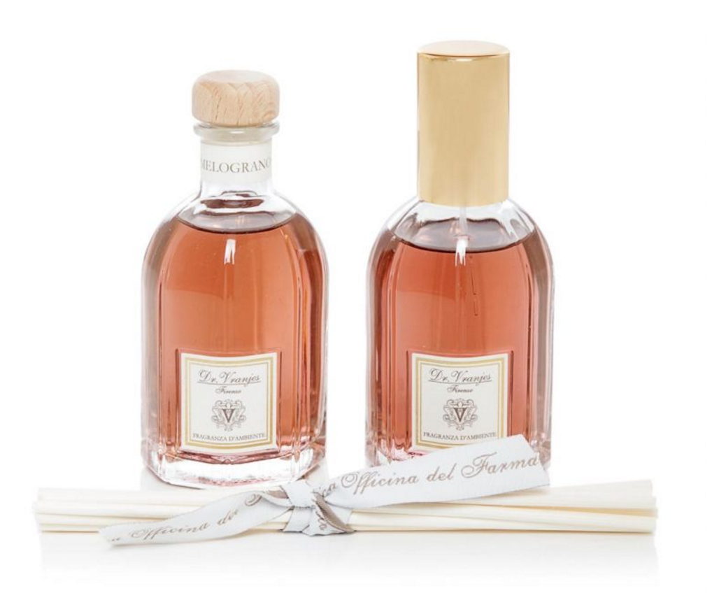 If you love the smell of fresh peaches, Dr Vranjes Firenze have created an amazing fresh scent and gift set for you, which includes a beautiful linen spray and delicate diffuser. The scent shares head notes of Water Melon, the heart is formed by a floral corbeille of Jasmine, Rose and Bergamot, and the base by the fragrance of Black Grape with fruity accents of peach and apricot, are the amazing ingredients used to recreate the peculiar scent of the pressed grains of the pomegranate. This lovely scent is delightful and is sure to put you in the mood for romance.