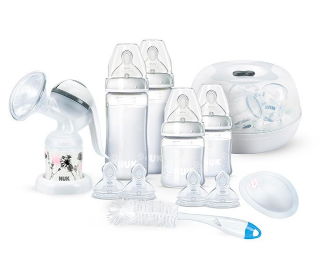 The NUK Combined Feeding Set includes all the essential items needed for successful breast and bottle feeding and it’s great value for money. Whether you decide to breastfeed or bottle feed, this comprehensive feeding set is perfect! The NUK Teat has been specially designed with an orthodontic shape and super soft zone, which simulates a mother’s nipple during breastfeeding. This encourages latch on and makes the NUK Bottle ideal for combined feeding. NUK Teats also feature the improved Anti-Colic Air System that minimises infant colic caused by a harmful swallowing of air. This fantastic set includes a breast pump, a microwave steam steriliser, 4 bottles in two different sizes, 4 extra silicone teats, breasts pads and a brush cleaner! It is like a one stop shop for baby feeding and we at Heart London can’t recommend it enough!
