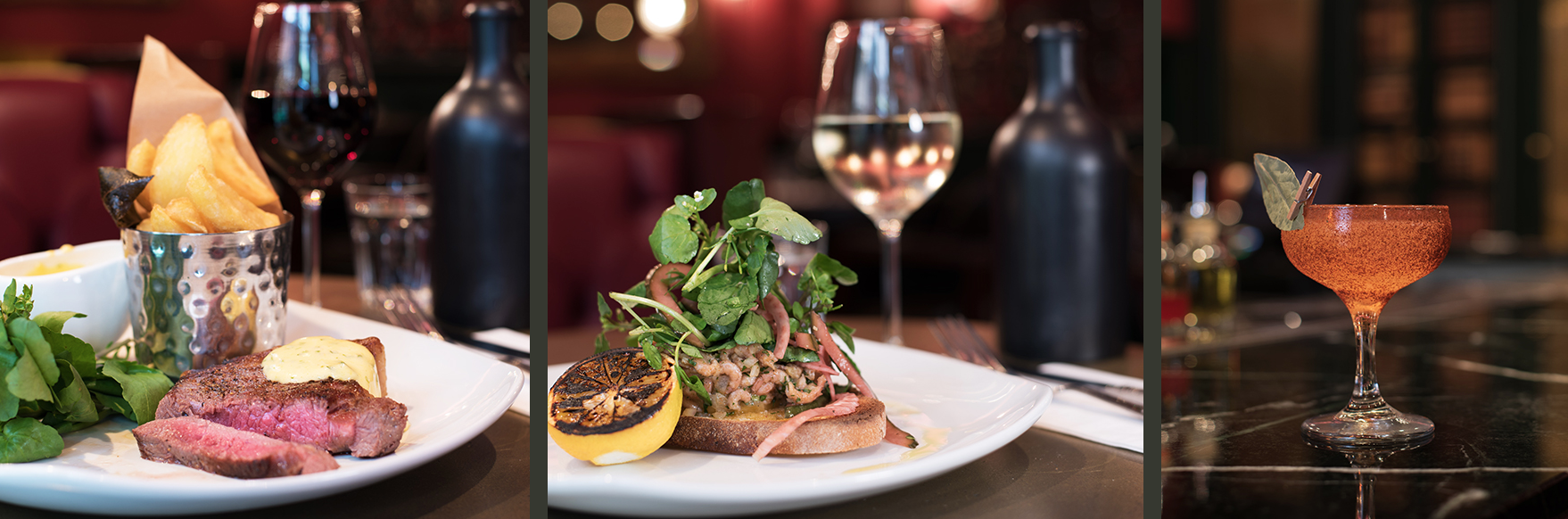 My friend and I stood for what appeared to be an eternity as a solitary member of staff was available to deal with customers. He did appear to be quite busy and as I didn’t want to add to his stress levels, I said nothing of the wait. When the poor chap eventually greeted us, he explained that his colleague had not turned up for work today and he was left fending the fort, so to speak. He showed us to the dining area and we were given free rein in choosing our table. I chose to sit in a decidedly cosy corner and we both began to relax as we were given the cocktail menu to browse. I have to say, for a sole member of staff endeavouring to negotiate and appease all the customers seated for lunch and at the bar, our waiter was amazingly efficient.