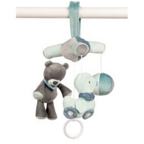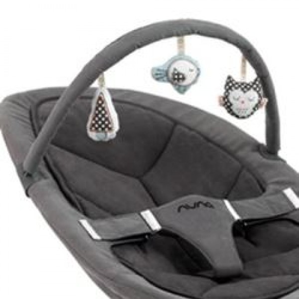 This lovely toy bar fits the Nuna LEAF, although it also fits easily on to many cots. This fun toy bar has different hanging toys to keep your little one amused, it features 3 soft toys: “look-at-me” birdy, a tree that rattles, and a crinkly owl entertains and stimulates the senses.