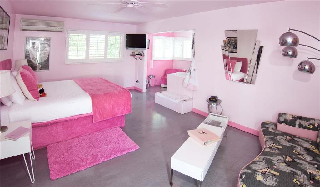 This boutique hotel’s kitschy-themes are perfect if you are a fan of James Dean, Elvis Presley or Marilyn Monroe. The furniture is authentic straight from the 50s. The perfectly pink and diamante themed Marilyn Monroe room has a ‘boudoir’ area where you could imagine Marilyn powdering her nose and choosing her evening gown. You can relax in the sumptuous jacuzzi bath tub in the room itself and lounge on the chaise longue watching your favorite show.
