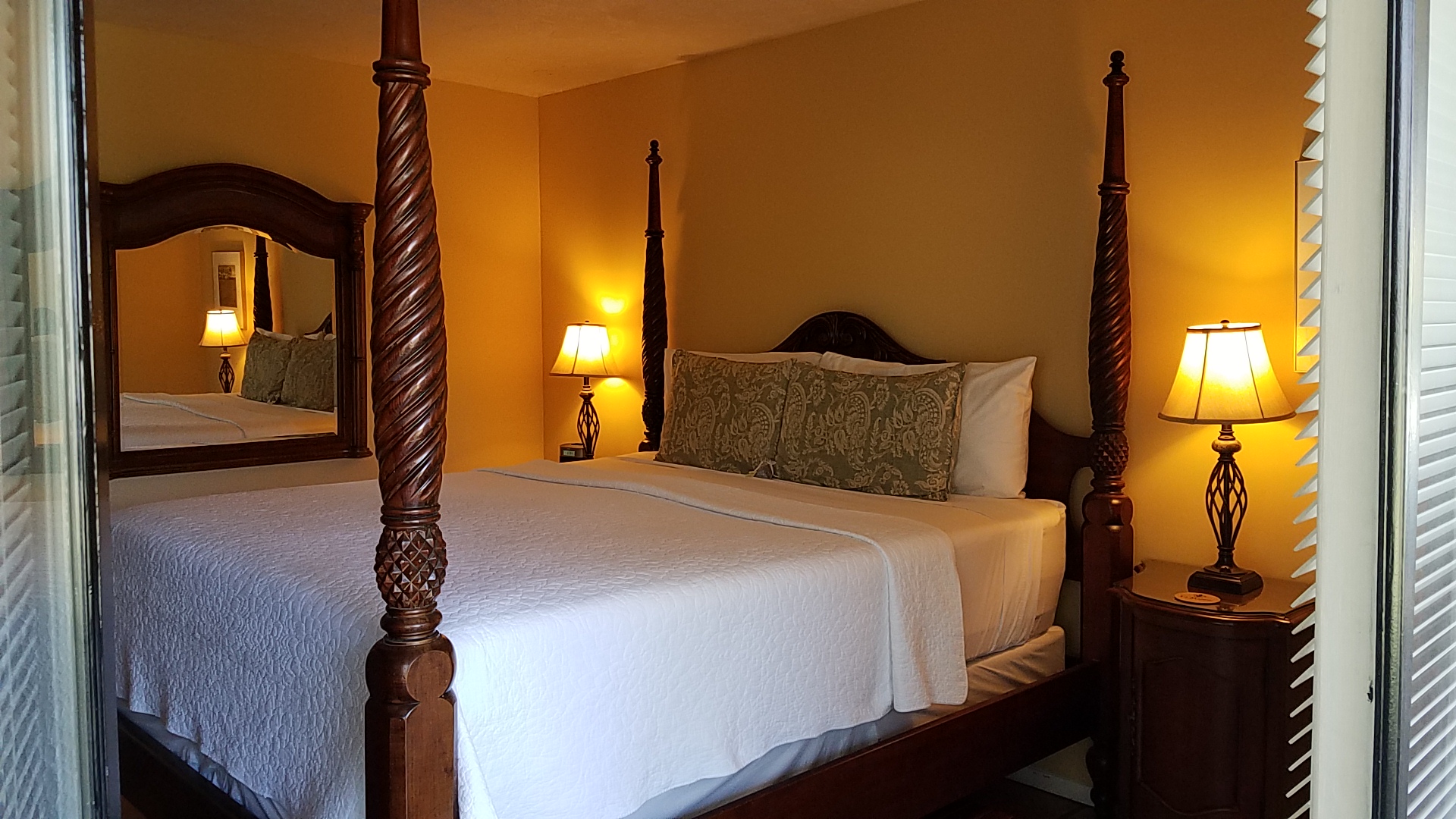 What really makes this petit heavenly haven so authentically French is the attention to detail; the beautifully carved, French, wooden, four poster beds, the matching antique wooden nightstands and wardrobes, the cool, terracotta French country floor tiles, the rafters created to replicate the feel of a French winery, right down to the fleur de lys bathmat and the deliciously scented L’Occitane toiletries.