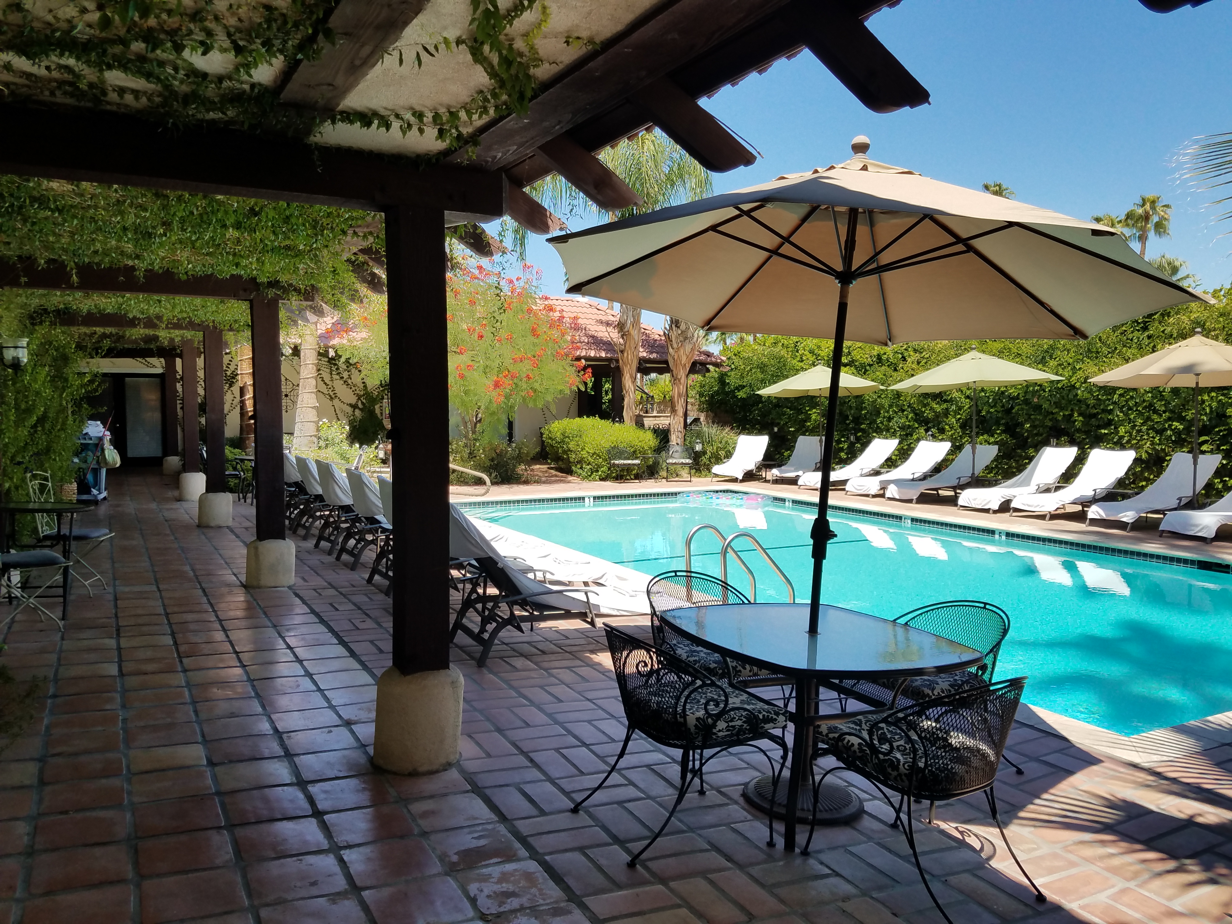 Even though the hotel is small, it is laid out to perfection, so you will never feel crowded. There are only fourteen rooms, all of which, overlook the sparkling, cool, deep, blue swimming pool.