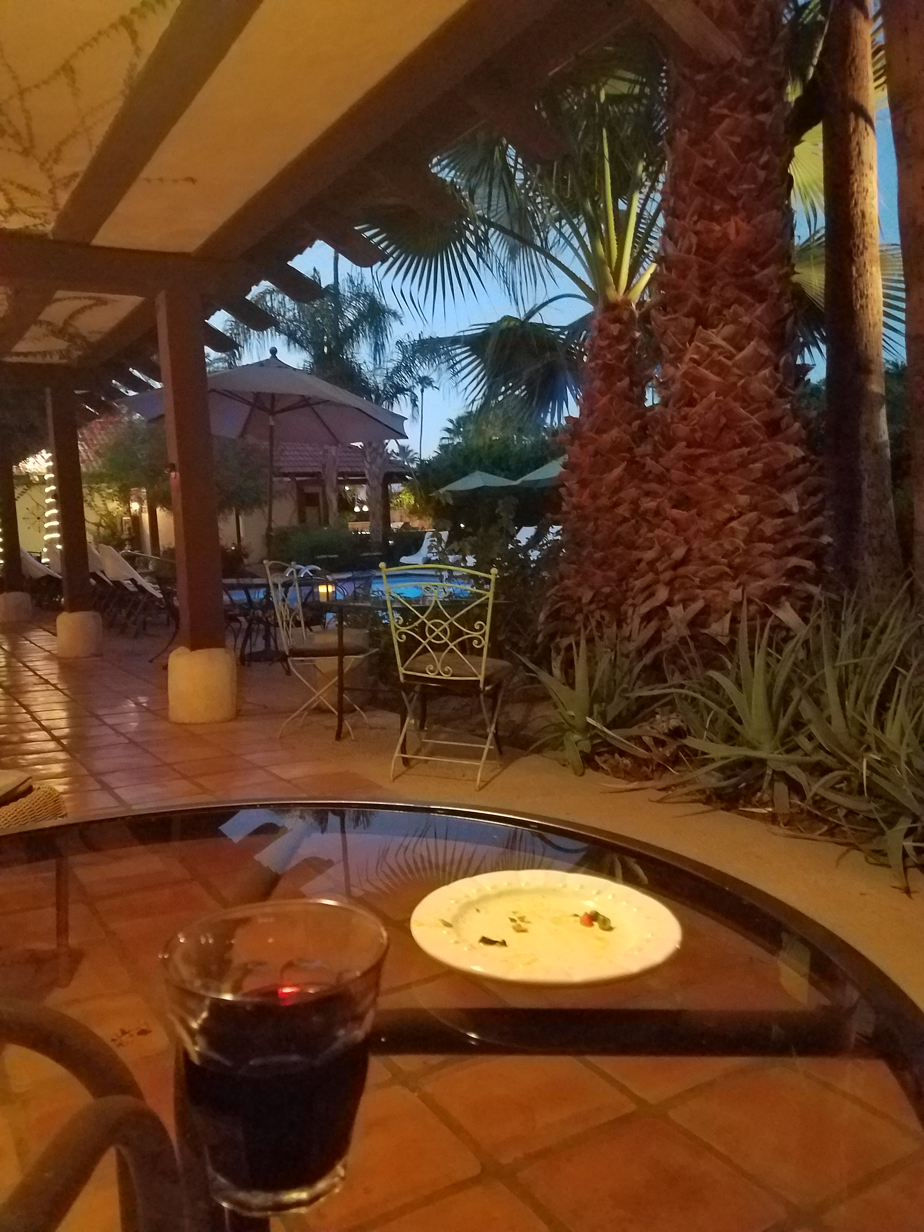 Surrounded by beautiful plants, sweetly-scented flowers and carefully placed seating areas, you will laze watching the sun set, enjoying the excellent, complimentary wine and apperatifs served each evening.