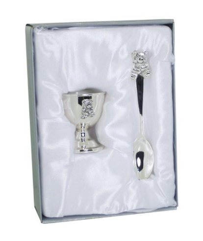 This stunning set makes a perfect lifelong gift, which can be passed down generations and can be personalised with a special engraving of your choice. This gift is great value for money and beautifully presented in a silver box with satin white material. The Teddy Bear Egg Cup and Spoon really made a unique present, that is almost too precious to use. A great present at a great price!