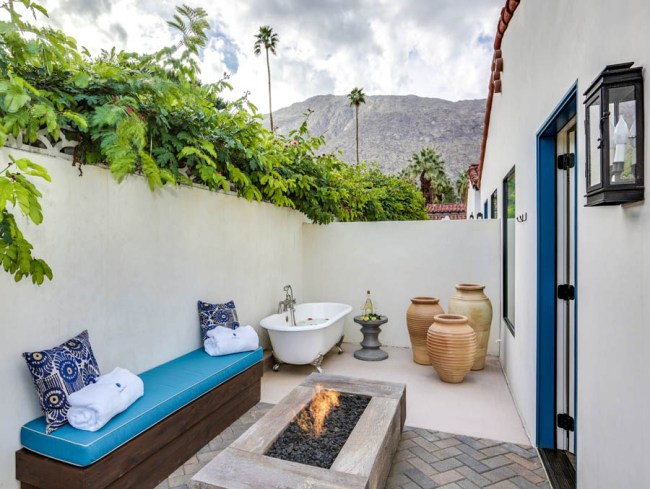 There are 18 secluded, private villas each with their own private patio, complete with an outdoor romantic claw foot tub. You can lay back in a warm bubble bath looking up at the starry sky with your fire-pit flames flickering in the moonlight.