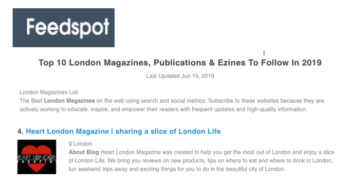 Thank you Feedspot for making us one of the top 10 London Magazines to follow!