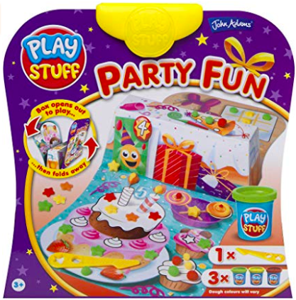 This set is perfect for little fingers, they can cut out circles and shapes with the plastic knife or simply make their own shapes with the coloured dough. This set can help teach colours, co-ordination and shapes. As well as decorating the cakes, they can play noughts and crosses, and the set comes with 3 different coloured doughs. When they have finished playing the box simply folds away, making it easy to store. My 2 year old adores this set, he names the colours, shapes and loves the fact he can create a party on the board.