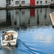 The ride is a casual 3 ½ knots, approximately 4mph, the perfect cruising speed for a lazy waterways journey. The boats are eco-friendly, made from 80 percent recycled plastic bottles [PET], fitted with super quiet rechargeable electric motors.