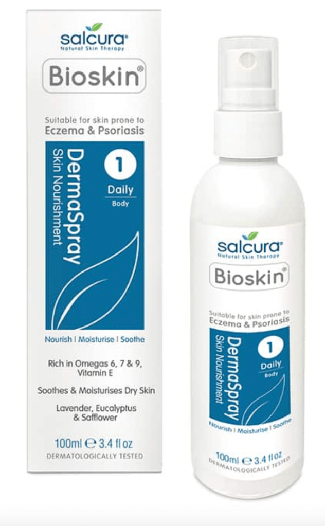 The Salcura Bioskin Dermaspray is a fine liquid of the Spray sinks deep into the skin feeding it all it needs to repair strength and moisture after sun exposure. This easy to use spray helped repair my over exposed skin quickly and is non-greasy so it leaves your skin feeling great! It’s suitable for children over 1 and over, so great for family use.