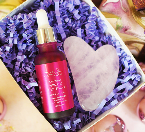 For best results when using the Jade roller and Gua Sha, a serum or moisturizer is advised to be applied before using the beauty tools. A Skin Repair Face Serum with Rosehip and Rose Quartz is a good serum choice as it is packed with vitamins and aids to regenerate the skin. Rosehip oil is well known for its skin repair properties and being successful in helping to heal and smooth out damaged skin. A natural multifunctional oil also works as a serum to slow down the aging process of the skin. It is nourishing, softening, and restores vitality. Organic Jojoba golden oil is another good choice as the antimicrobial properties of jojoba oil prevent the growth of some bacterial and fungal microbes that attack the skin. A very mild oil that is perfect for those with sensitive skin, acne prone or oily skin.