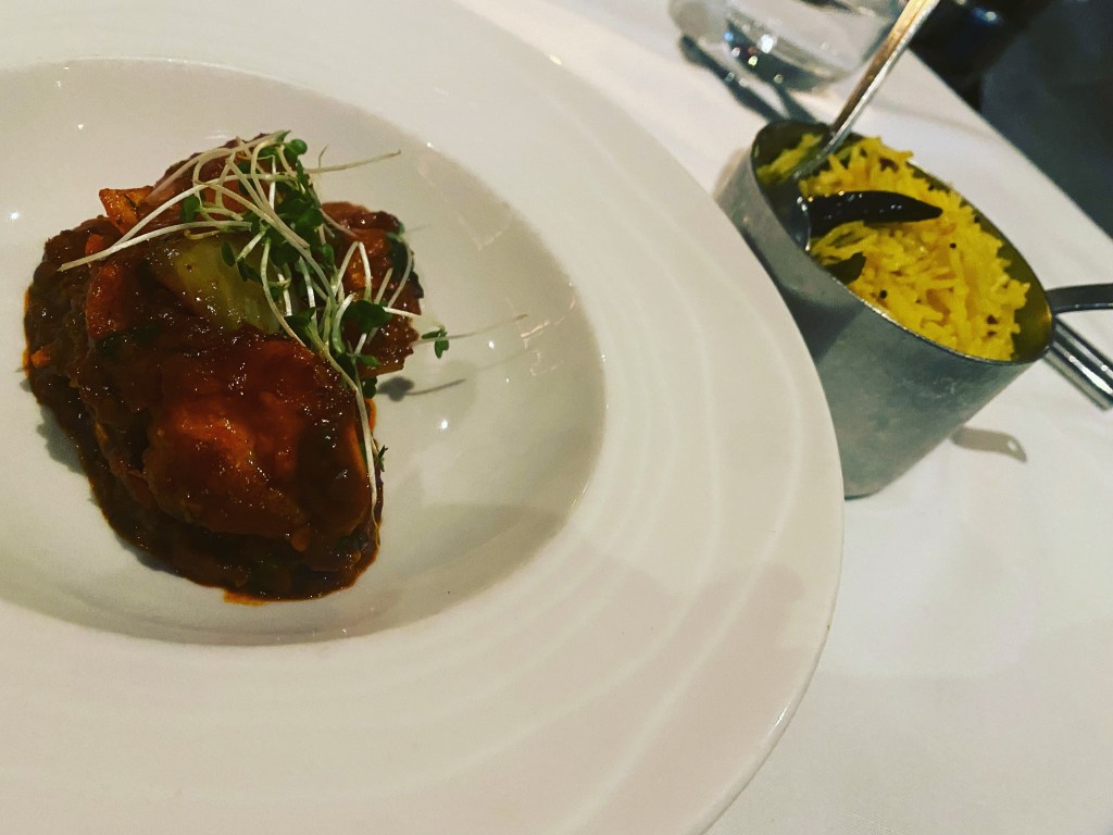 Every dish seems even tastier than the one before and we absolutely loved the Samudri Khazana, which pairs Tandoori Lime King Prawn with Mustard Stonebass and a divine Mango wine, from the Rhythm Winery in India. The wine wasn’t too sweet and was bursting with flavour.