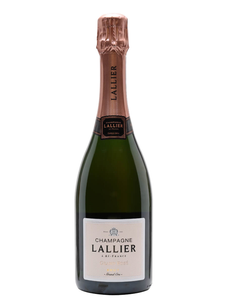 This elegant, fresh rosé Champagne from Lallier that is made with a blend of 65% Pinot Noir and 35% Chardonnay grapes. Aromas of fresh cherries, redcurrants, raspberries, apple and mandarin fill the nose, complemented by notes of honeysuckle, red berries, fresh lemon zest and a delicate salinity throughout the palate. This is a wonderfully soft and creamy rosé Champagne with a nose of fresh strawberries. The palate is a joy with soft bubbles and round fruit.