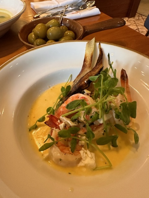 Heading down to the restaurant for dinner we noticed a great selection on offer to suit everyone’s taste including gluten free and vegan! The restaurants neutral covers provide a nice relaxing atmosphere. The wait staff are friendly and the RNB music playing in the background puts you in the mood for a fun evening ahead. They also boast a fantastic selection of tasty cocktails! We plumped for the asparagus soup, plump olives prawn starter and more.